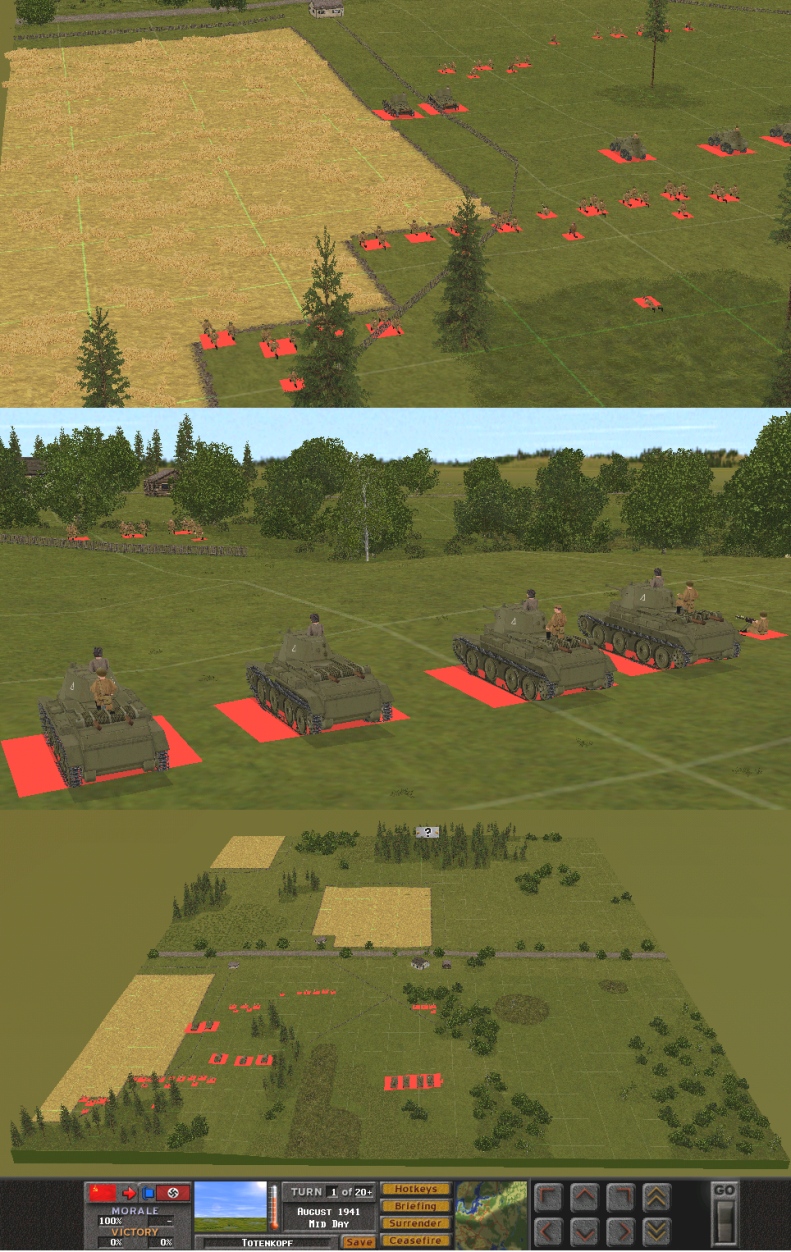 Además no hay unidades mágicas. Si dejas a los tanques solos cerca de la infanteria empezarán a caerle molotovs, minas magnéticas y granadas. Si subes algo a una posición muy expuesta no durará ni un segundo. Realista a más no poder: el combate está basado en tablas de penetración reales, donde se tiene en cuenta desde la munición, el lugar de impacto el ángulo de penetración y cantidad de cosas más, puedes leer en el manual perlas del tipo: [shot trap: ciertos blindados (el Panzer model A temprano, por ejemplo) tienen un diseño defectuoso en su torreta que refleja los impactos hacia abajo (el techo del vehiculo) lo que puede causar daños catrastróficos]
