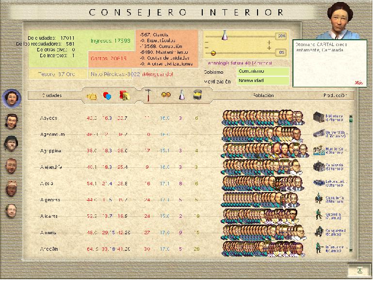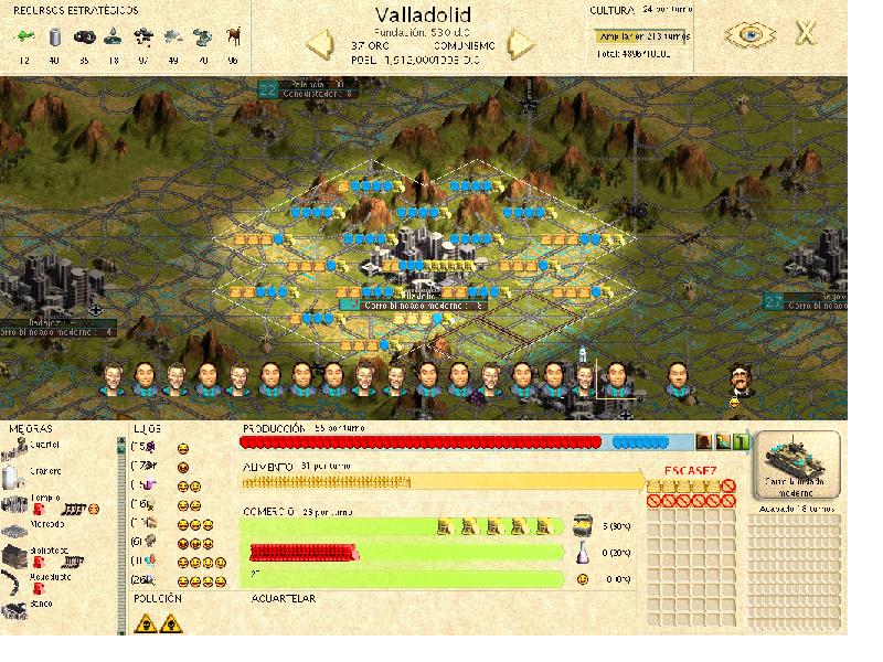 Os acabo de poner una imagen de una de mis ciudades ANTES-productivas: Valladolid me construía un carro blindado moderno por turno (que venía al pelo para construir cosas en mis ciudades hiper corruptas