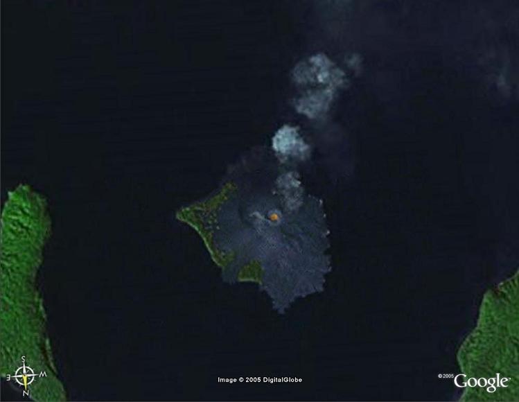 Esto creo que es el nacimiento/crecimeinto de una isla en Indonesia, no lo he podido comprobar pero por su localización (entre Java y Sumatra) es posible que sea la Hija de Krakatoa.