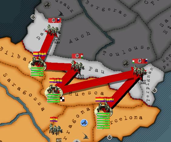 Hablando de HoI2, aquí tengo una imagen del glorioso ejército de la República Socialista Española atacando en oleada las hordas nazis a los pies del Pirineo francés
