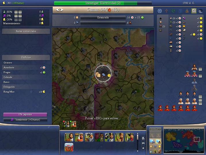 Fue algo más costosa de tomar (perdí un par de cañones en la salva inicial) pero cayó rápido. Una ciudad apetitosa, tenía el Kong Miao que me daba oro por ciudades confucianistas, que era mi religión prpal.Campeón 2006 Progressive Games