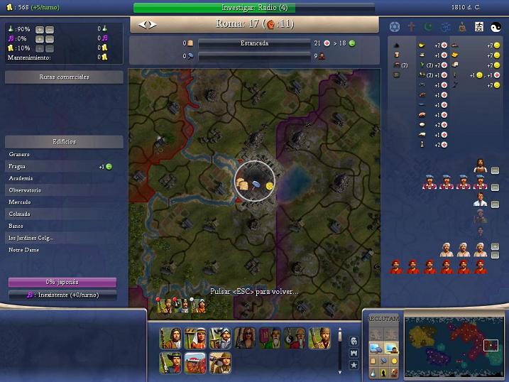 China ya había firmado la paz con Cesar. Conquisto Roma, Ciro le declara la guerra a Cesar y se hace con una ciudad romana suelta en el Sur (Rávena), y veo que el mamón se va a aprovechar de mi sangria atacando el resto de ciudades romanas con unos inmaculados ejército. Consigo frenarlo a cambio de valisas cesiones tecnológicas
