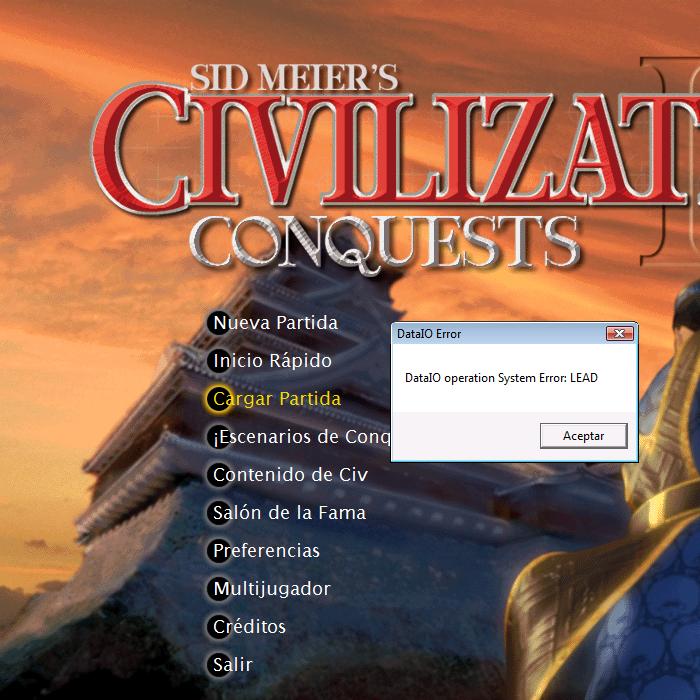 Según el tipo que escribe, lo que causa el problema en que el archivo LSANS.fot le dice al juego que cargue el archivo LSANS.TTF (que es el quecontiene la fuente) de "C:\BreakAway\Civ3\Conquests\LSANS.TTF", y, si el archivo no está ahí, el juego lanzará el error. Ahora, no sé por qué el error no ocurre bajo Windows XP. También, y como curiosidad, dice que los de Atari daban como solución eliminar todas las fuentes LucidaSans de la carpeta "Fonts" de Windows