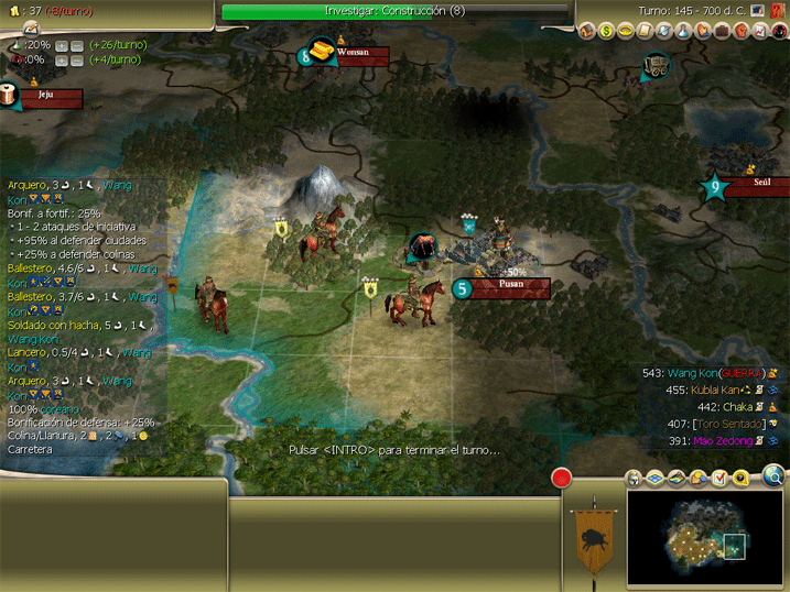 Mientrás, Chaka ha tomado la ciudad bárbara del sur y aproxima con descaro una de sus piletas hacia terreno coreano