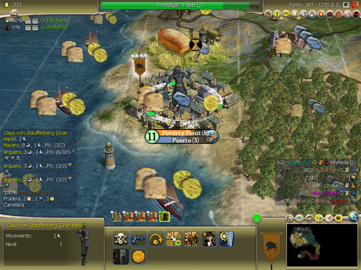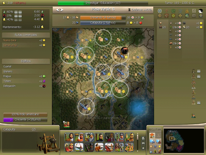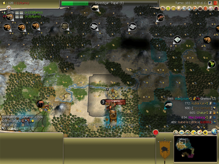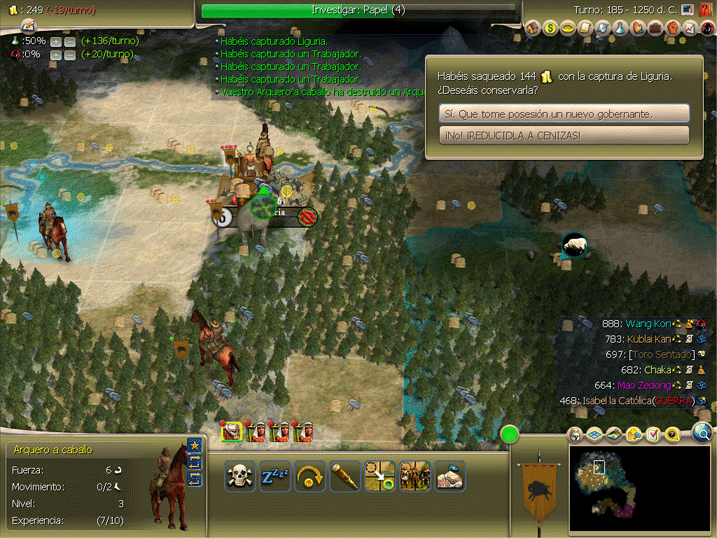 Mientras, mucho más al norte, Toro Sentado asedia una ciudad bárbara con mucho aluvión, creo que es hora de expandir nuestras fronteras. Más arriba se puede como el coreano sibilosamente se acerca para trabajar todas las pieles y plata de la zona.