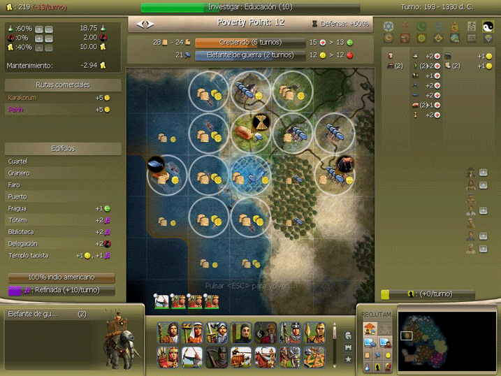 La cosa está regular, desarrollando el imperio indio bajo las faldas de un tio con el triple de ejercito que tú, al cuál le has declarado la guerra y que está más avanzado, con más ciudades, más producción, más oro, más listo, más guapo, más todo que yo.