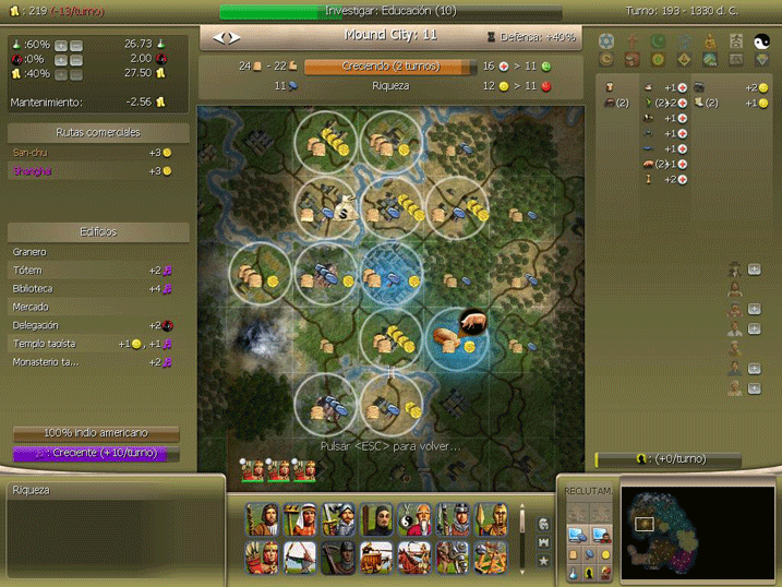 Ahora bien, hay una cosa que no entiendo muy bien. Está claro que con pacifismo aceleras la producción de GP's, pero ¿no supone una carga excesiva para la economía?, máxime cuando no debes dejar de hacer unidades militares, teniendo a los Coreanos incordiando todo el rato. ¿El hecho de que no tenga mantenimiento compensa el gasto militar extra?.