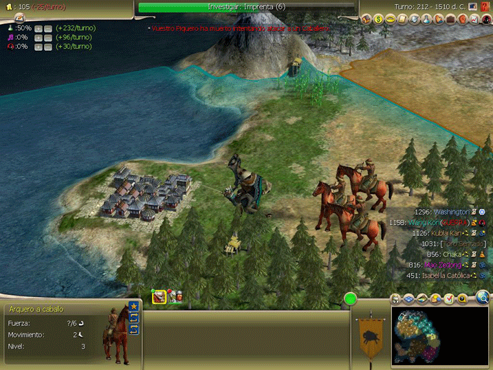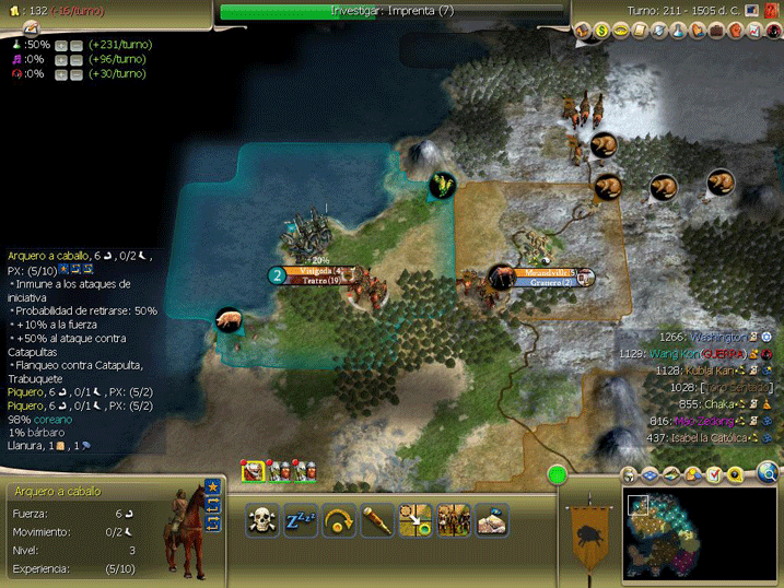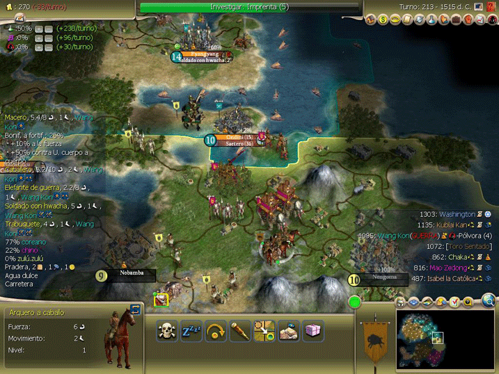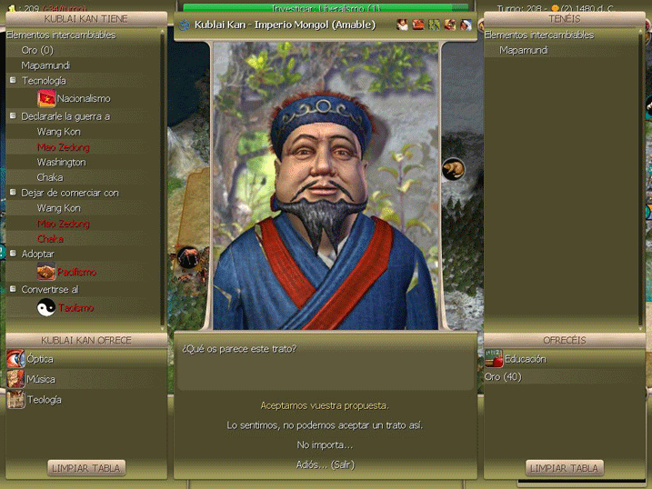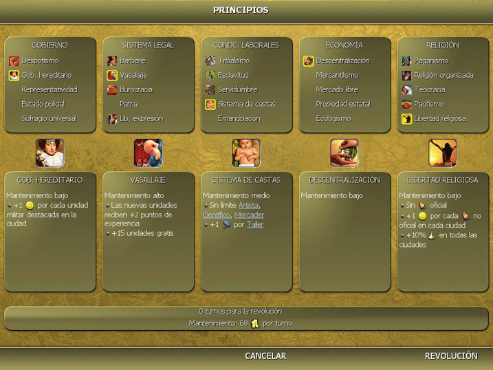 Se adopta el vasallaje, el sistemas de castas y la libertad religiosa, de momento no somos los peores enemigos de nadie, el americano no lo pueden ver ni mongoles ni zulues, cuando terminemos con el coreano seguro que iremos a por el