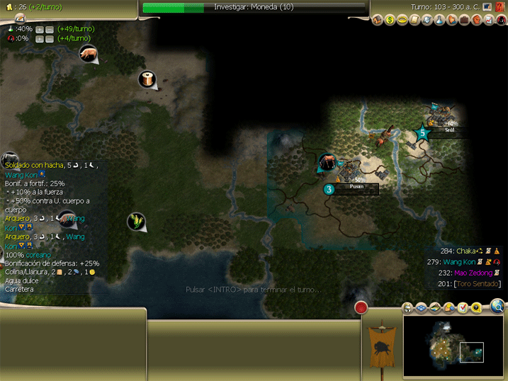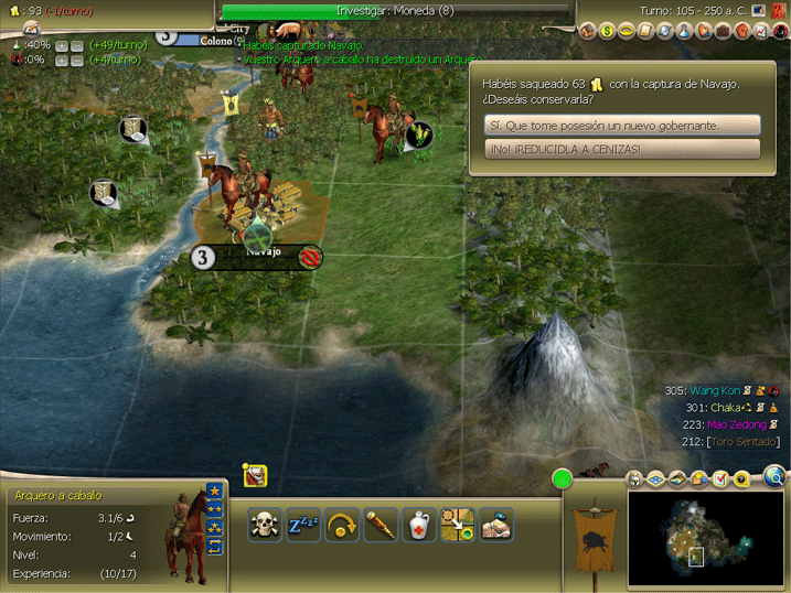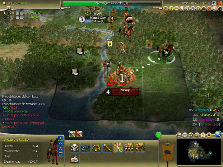 Muchas cosas en el turno 101, por fin llega el alfabeto y pongo moneda, que la tendremos en 12 turnos. Estoy acumulando un pequeño ejercito en Navajo para tomarlo ya y voy a sacar un colono que me acerque hacia ese márfil.
