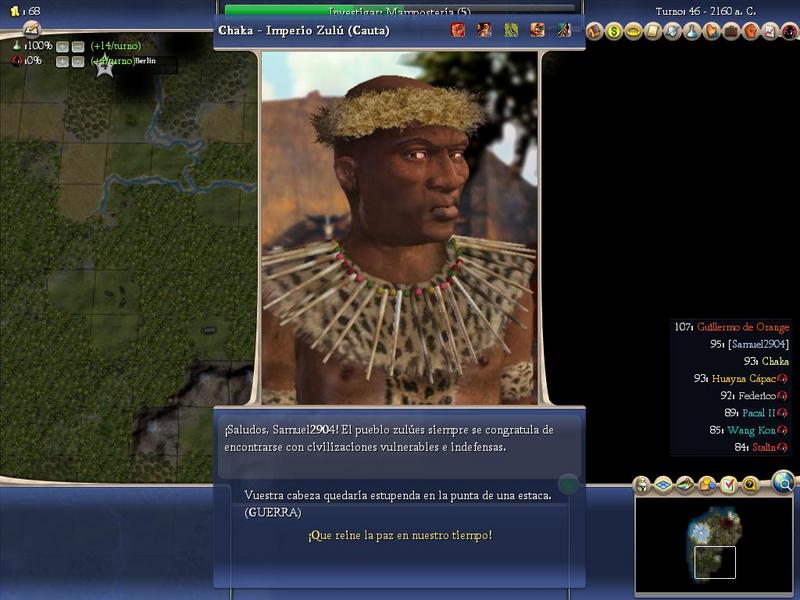 Fijate que en la espadita, por poner un ejemplo, ha lanzado la nave y todavía nadie le ha soplado siquiera, cuando Samuel está también a punto de lanzarla pero está recibiendo un par de ICBMs por turno al menos, y peor aún, otros sin posibilidades ninguna de victoria son arrasados por las mentes perversas del CIV