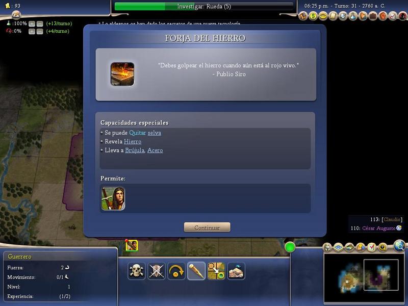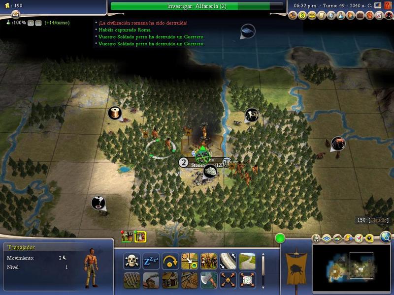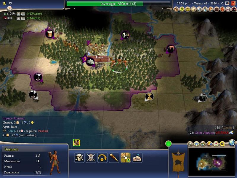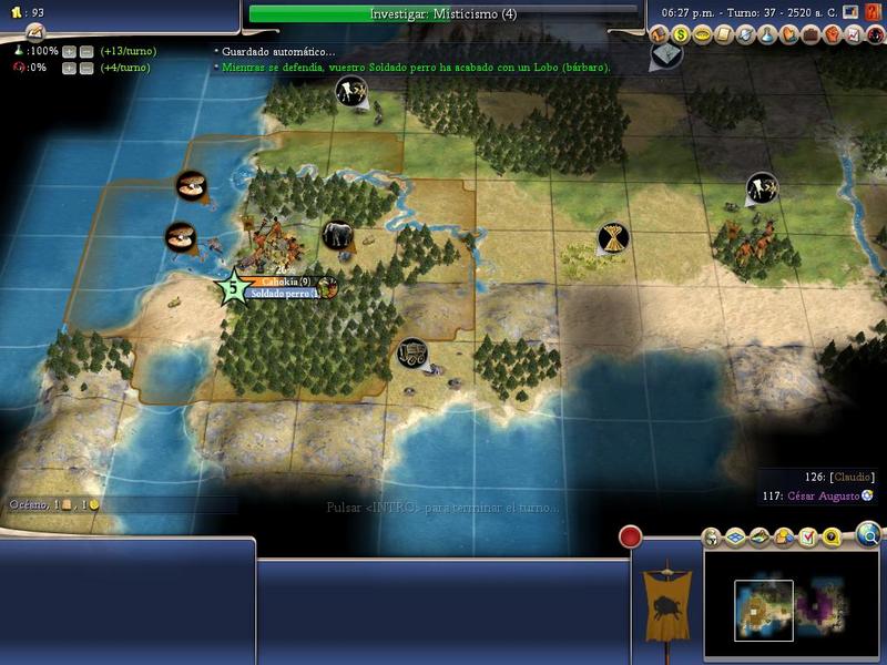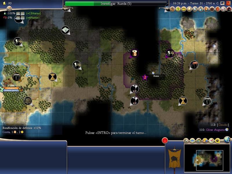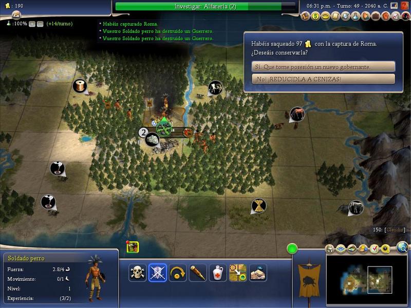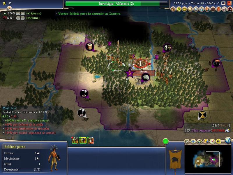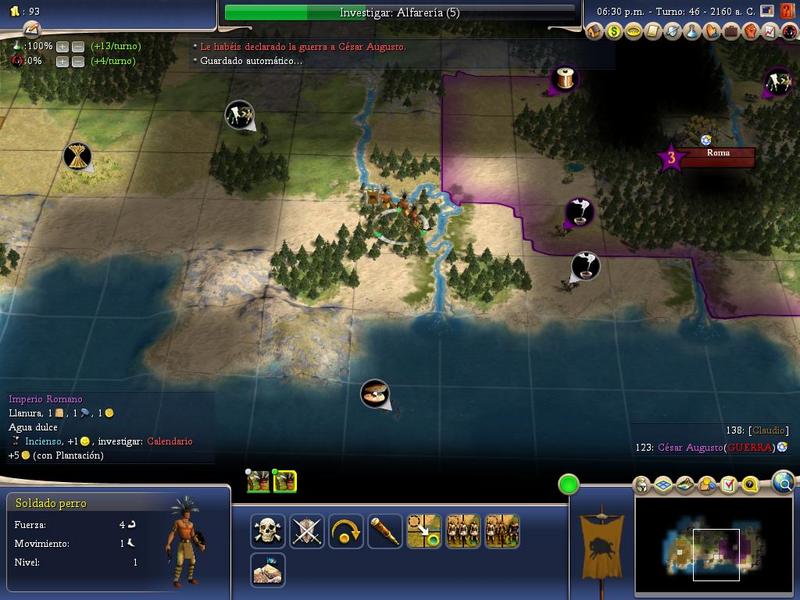 Todo preparado, con dos soldados perros es suficiente (uno mas se encuentra en camino por las dudas) y le declaro la guerra a Roma en el turno 46.