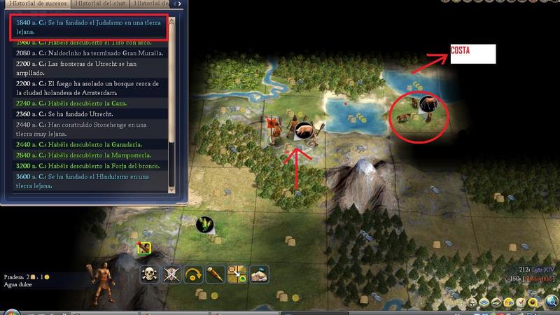 - El guerrero del norte ha descubierto una fuente de caballos, este debe ser nuestro siguiente objetivo, un nuevo río y lo que parece una selva uqepodría estar separando ambas civilizaciones. Aparte se ha visto que el mar sigue presente por el este lo que nos hace pensar que mejor mover al oeste.