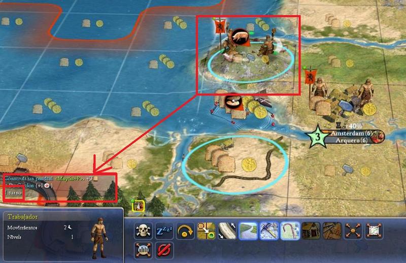 En el juego cuando una unidad de trabajador le queda un turno para acabar una mejora significa que la tarmina este mismo turno, per si no hacemos nada no veremos la mejora terminada hasta que agotems todos los movimientos. Bien, esto tiene un sentido ya que gracias a esto si queremos que el trabajador abandone lo que está haciendo antes que lo termine y qede sin movimiento sólo tenemos que seleccionarlo y moverlo.