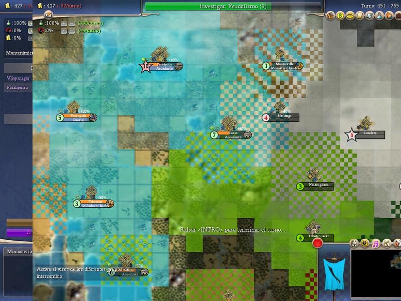Yo soy los de color azul, la del sur ven que hace poco que se recuperó y tiene color azul y verde, en total tengo 5 ciudades. Moctzeuma la cultura verde y los blancos Churchill de Inglaterra.