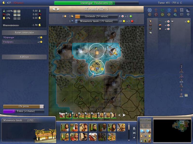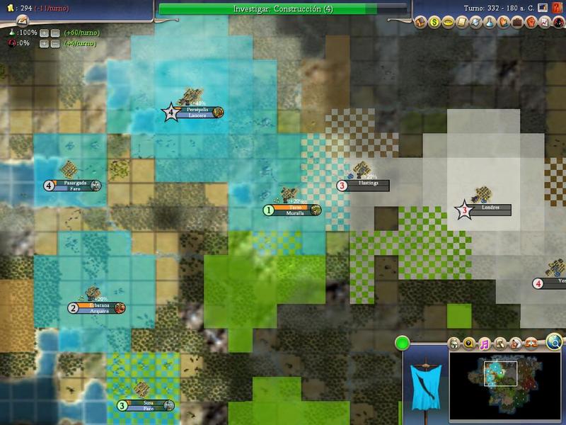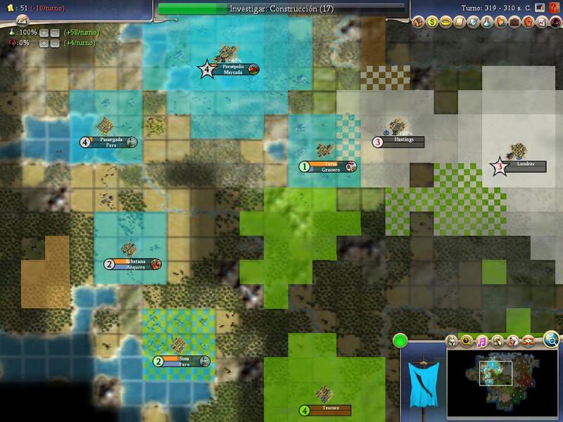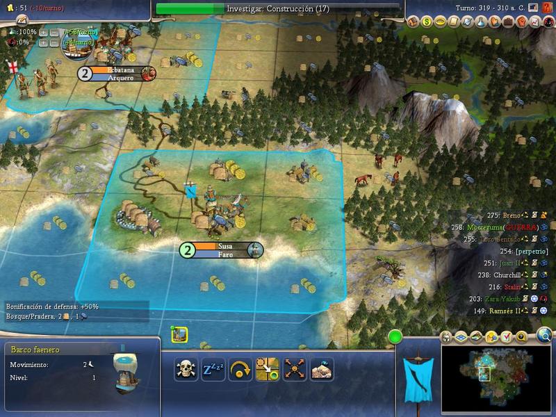 Del Civ IV BTS estoy con los Persas, líder Darío I, dificultad noble, tamaño enorme tipo Earht2, velocidad maratón.