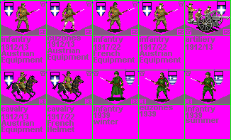 Steph for you my good man I will gladly take up this task. Besides, I have the units set up in Photoshop where modifying them takes little more than five to ten minutes per unit. My only concern would be finding a proper coloured illustrated reference for all the units. Any idea where I might be able to find such a reference?