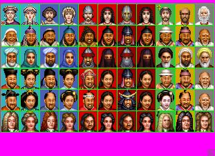 The flags on top are: crappy barbarian, Russia, E.U., Generic Muslim, China, USA, UK, India, and two extra Commie and Nazi