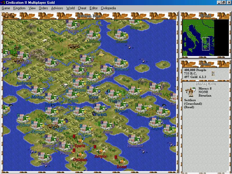 Just as a side note reagrding roads and movement: point taken about the lack of roads in Greece, but should you wish to use this idea for a future scenario I recommend you check out Sengoku Jidai by DV. It's possible to give units low movement values which restrict their movement off-road, while allowing them to travel relatively large distance via roads which have had their movement modifiers substantially adjusted.