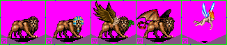 A simple lion, a Sphinx, a Chimera, a Manticore and a Fairy. The Manticore's tail is from the ToT original graphics.