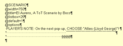 That wasn't so clear. Here's an image of the 'code'. I pasted it into Word. Set the options to show spaces, returns, etc. Note some lines begin with the the 'No-Break Space' character (Alt+0160). This gets around Civ2's habit of stripping leading spaces from lines that are displayed in text boxes.