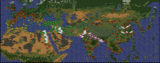 Current status. Ditched the huge map with too many cities/units/movement problems. Small map instead, cities/improvements done. Simplified tech tree, stats scaled down. Starting year 335 BC, title changed. Ends at year 1. Working on events. Units done. No clue about non-unit grapics.