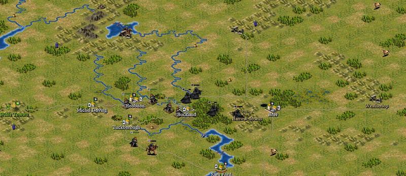 ). The Balrog will still make away with Gandalf on Durin's Bridge unless he has time to fortify. Why not raise def bonus to 200% instead of 150%. HP decrease would be optional. Also, wouldn't you find it more apropriate for the Mumaks to be delayed as well? And finally, did you consider changing tile 69,69 to grassland/plains? The problem is that, if one hobbit legs behind there is a chance a Nazgul will kill him coming from the south. That would make for the same odds of safety like it would for the player to take the main road to Bree... too risky.