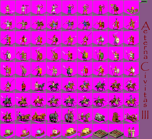 I have also been discussing an idea for Civil Wars with a Civ playing friend at work. I think the idea will need some work but it would cause players some major problems. I noticed that during the current scope of the scenario (281 BC-117 AD) there are at least 14 major civil wars or uprisings. Representing these events with the Civ2 engine is tricky. If there was a spare Civ to use I would create a Rebel faction. As there is not I will have to try an be a bit more creative. I have been looking at using a unit slot as a ground based unit with very high attack that is destroyed after attacking (for argument's sake I will call these units Rebellion). When a civil war begins these units could be event created outside Roman cities (perhaps 20 at a time in a stack) and they would be guaranteed to take the city. I could have permanent events (every turn create a unit at location x) spawning units under key cities. If these cities are captured by the Rebellion units they will start to receive these reinforcement units every turn, strengthening the Rebels. In turns when the city is not in Rebel hands the location for the event will be blocked and no units will be spawned.