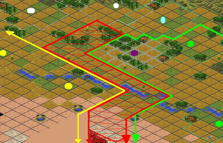 In two turns, Egyptian units will be on or within the Yellow line zones indicated on the Minoan Map. Babylon is requested to withdraw her units to the Green line zones. Elsewhere, the desert is free terrain except within 5 spaces of each others cities.