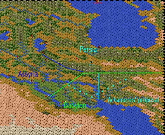 I'd consider the Persian starting position to be zero grassland in Persia proper. The nearest is south of the Zagros, by Adab. The nearest above the Zagros is across the Kur, at a distance of 20.