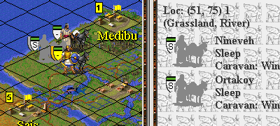 * Thinking ... is a frozen unit really visible (if not adjacent to your unit/city)? Examining my old maps ... yes, on past maps I see sleeping caravans that have been bartered to Babylon. (maybe ... fortified units may cause a problem ... but this seems unlikely)