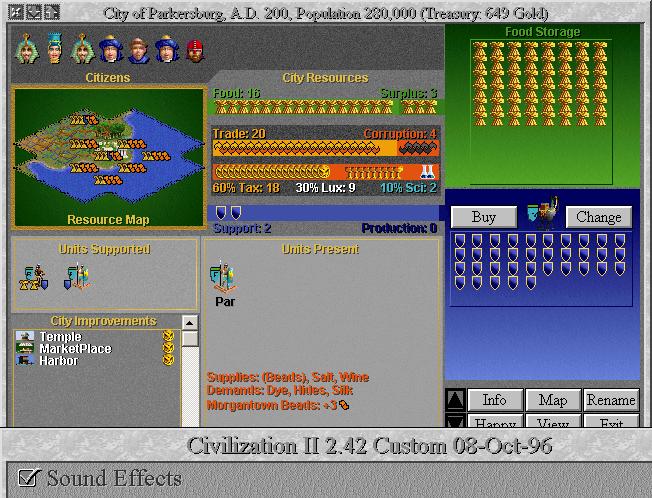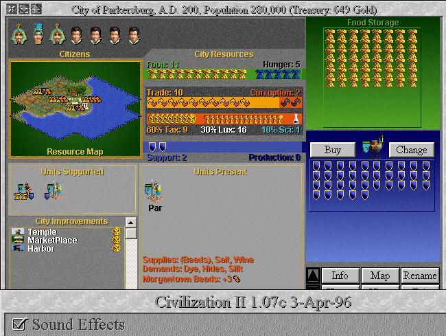 I was looking for a diety game with cities that were actually supporting units, so i would be able to lower the production to 0. If a city has no support, it will always have extra production from the city square itself. The fact that copper was there provided optimism, although Rome also has Copper and nothing happens there.