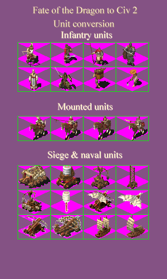 Another interesting chapter about units: conversion from other games... The Fate of the Dragon revisioned version for Civ2 .