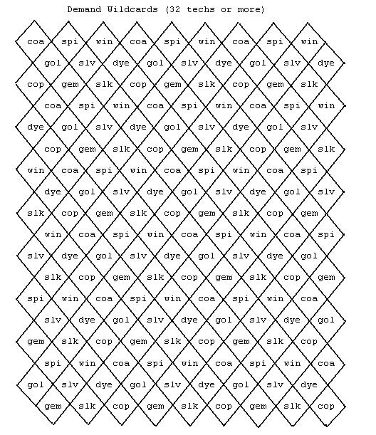 The chart for demand wildcards (tech total under 32) which originally appeared here was in error. The corrected chart has been added on page 3 as a new post. My apologies to those who tried to use the incorrect chart.