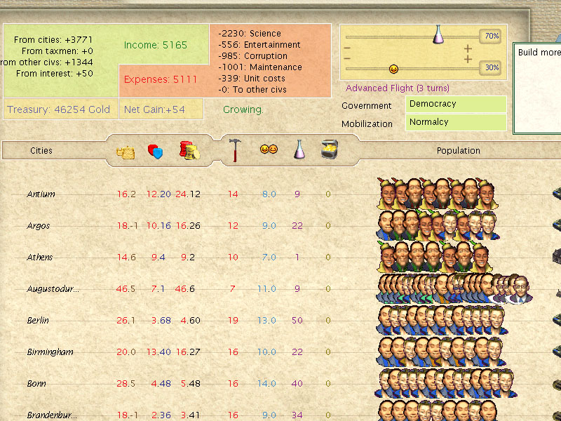 On the gold issue, in my last game I kept a constant large reserve of gold after securing the Great Library. I would rather sell the AIs techs and slowly drain them of money - instead of allowing them to store it - so as to limit *any* trading among them - I just have this feeling that any form of trading would help their attitudes towards each other and I didnt want them all coming down on me lol. Also knowing the AIs' tech research preferences under certain situations is a definite must in emperor and something that was never an issue for me in monarch. For example, being relatively new to emperor (and Civ3 in general) I found that civs tend to go for Map Making before Literature - which makes the Great Library that much more easy to build.