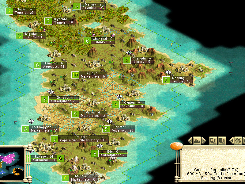 I finished off Rome, Iroquois, and the English, but got my butt handed to me by the combined efforts of the other four civs.