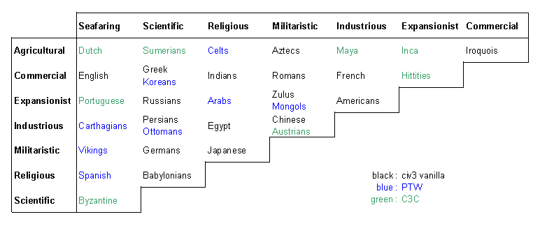 In earlier beta versions of Civ3, when there wasn't a peaceful method to trigger a Golden Age, China was Industrious and Scientific. Firaxis only changed it to Ind/Mil when they introduced the wonder GA trigger. I agree that Scientific and/or Agricultural would be adequate traits for China, but they wouldn't match to the Great Wall.