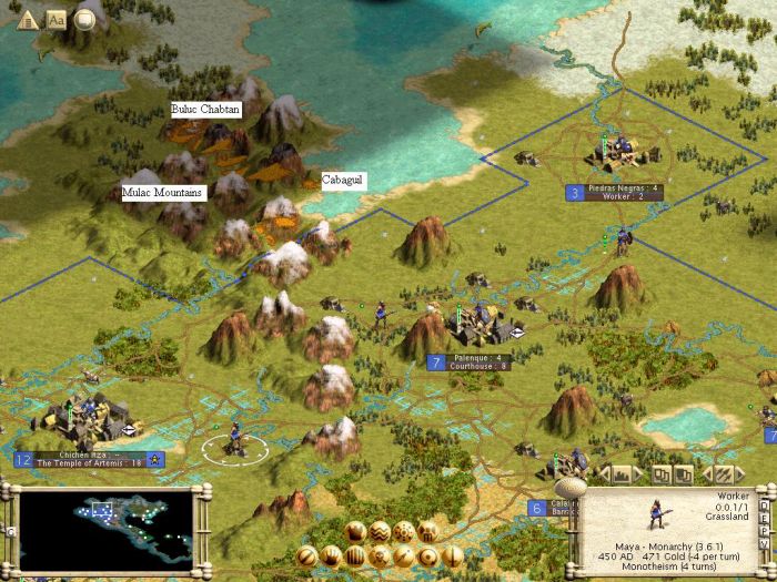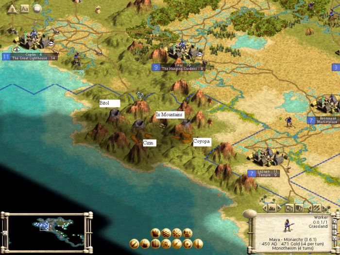 I'm playing as the Mayans on a Wet 4 BYO Temperate Continent map. Quite a few volcanoes, so I went to Google, found this link , and named the volcanoes and mountains after Mayan gods.