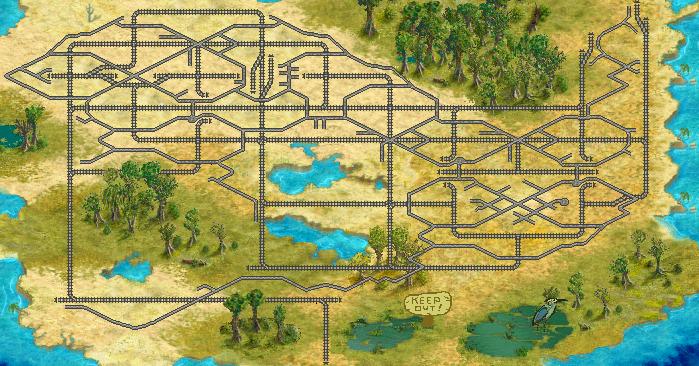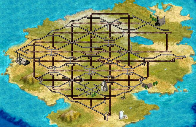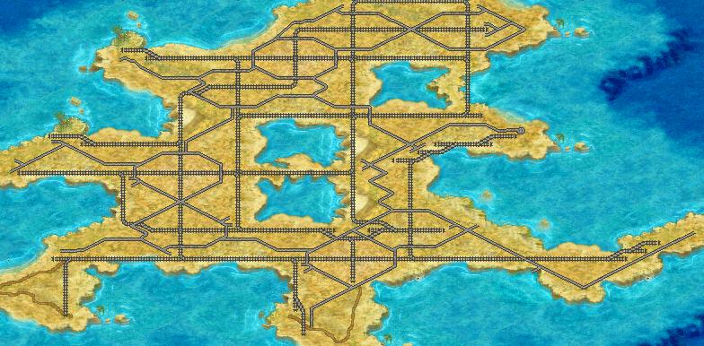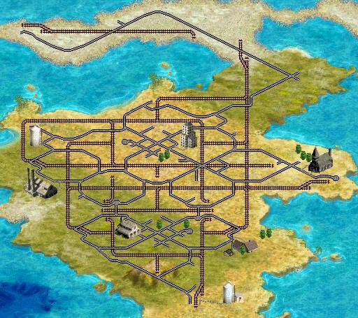 There are railroads interlaced with paved roads, I did not touch the regular brown 'roads' file.