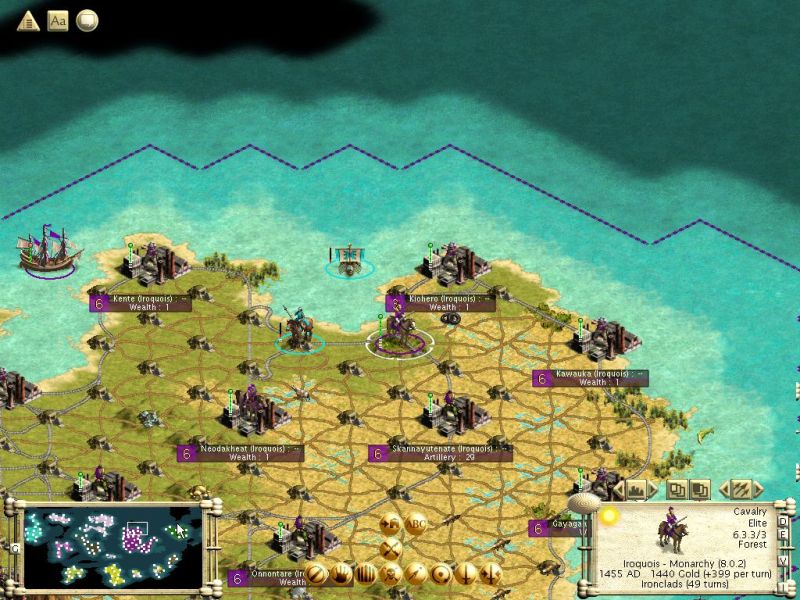 Another funny thing is look at the Aztecs with some 11 cities and way behind in tech and the F3 advisors says I am weak next to them. We shall soon see. As soon as I aquire or build two more armies, I will pay them a visit to get some dyes. I want two infantry armies to stop any counter attack (I hope). I will have to ship them as 3x and add the fourth after arrival. Well I may get transports before then, if China is going that way.