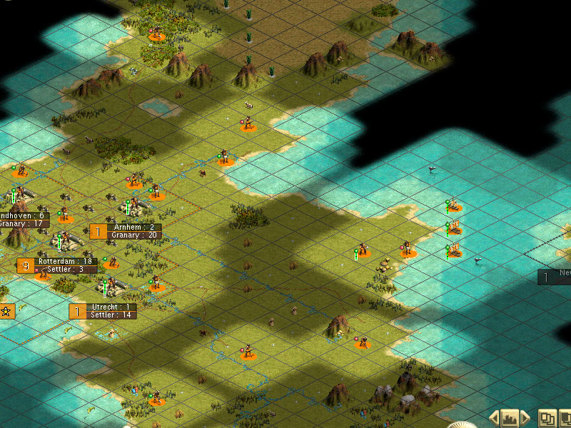 1750 BC: Utrecht completes a triple-chop-assisted granary and starts work on a settler. Rotterdam completes a granary and starts work on a settler that will be assisted by a chop.