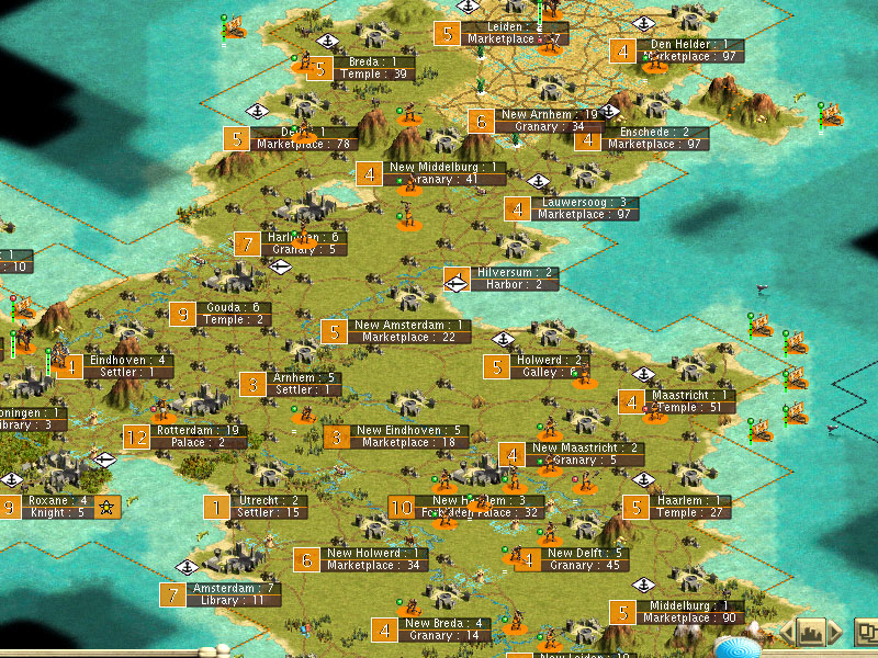 My rexxing is completed, including the islands towards the Zulus and the 1st of the southern islands. 38 cities total (islands included).