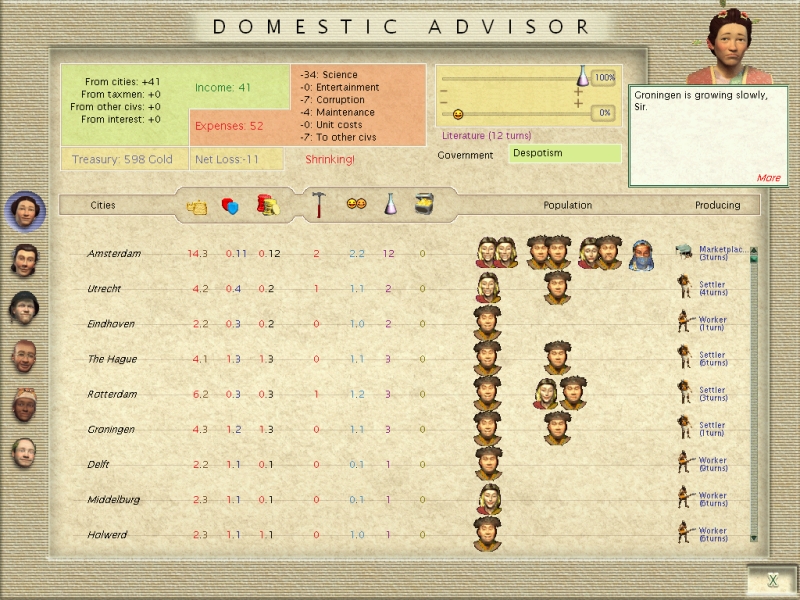 Sweet. 4 turn Settler-pump in Amsterdam, 2-turn Worker pump in the second city either 44 or 87 of Amsterdam (probably better 44). Sweet.