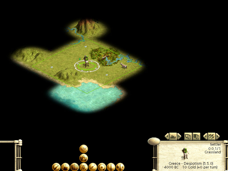 Put your civ on a nice island, make sure that there are at least 4 squares of sea and ocean around it and… enjoy the peace and tranquillity? Well, in a sense yes. If you create your world carefully, you can be sure that until Navigation no civ can land on your shores, even with the Great Lighthouse. This should give you time enough to settle your island properly and forget about building a strong military straight away.
