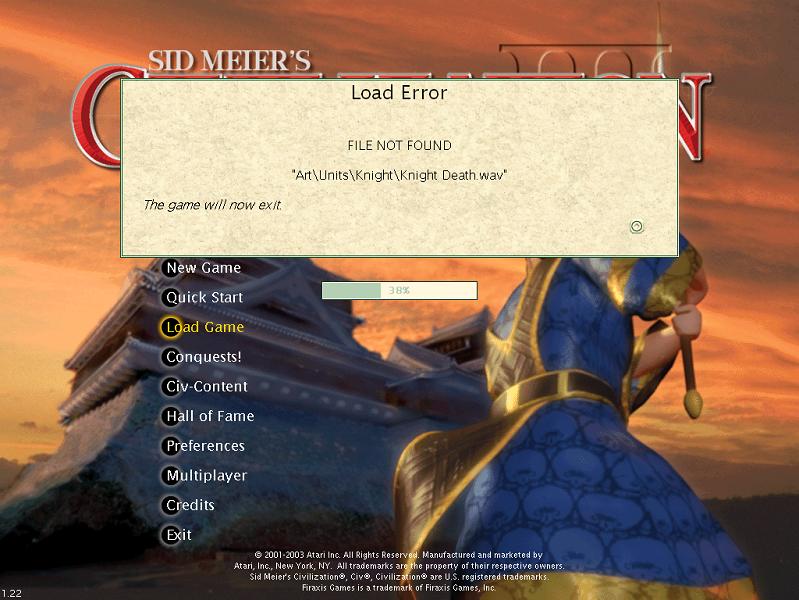 here is a screenshot of what is coming up, then the Civ program closes down