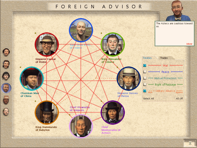 While Civs that are annoyed are quite predictable in their behavior if you don't do something to apease them, It is quite impossible to change the plans of a polite civ that plans to annihilate you. I've tried trading for more luxuries and stuff, but they don't care - even if it means all their cities will be in civil disorder the next turn by losing all those trade routes (even losing strategic resources like iron!).