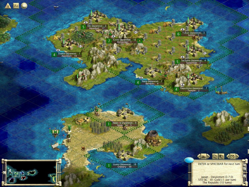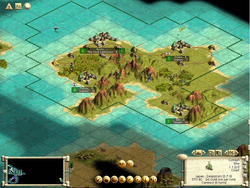 Oh, and building the pyramids with only 4 cities on the landmass is somewhat a wastage, too. All you get from is is 4 free granaries, which cost 4x60=240 shields. The pyramids cost way more. Granted, they'd be without upkeep, but still...