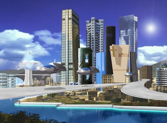 I'll tell you what is mine tho, and thats the water front with blue light, the church, the tall black one, the globe thing, the dome thing next to it, the many condos next to that on the other island.. the pyramid and the road that floats