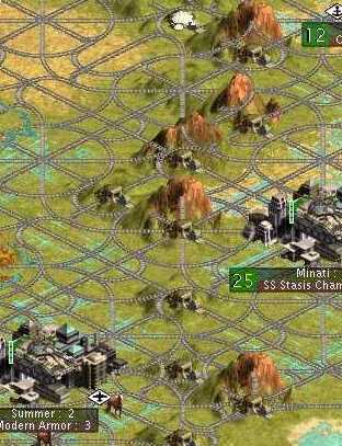 The pcx file is organised so that the bottom row of 16 tiles (and the rightmost one on the row above) are graphics for railroad tiles which are connected to railroads in all 8 directions. It's these graphics which are almost exclusively responsible for the messy and unnecessary railway looping that you've complained of. What I've done is to replace 12 of those 16 tiles with copies of the remaining 4 - which were chosen on the basis of their geometry and level of simplicity. Less confusing looping of railroads should hopefully mean less chance of sending your mech infantry off into the hills when they're needed vitally on the front line. Furthermore, the game seems to use a map coordinate algorithm to choose which of the 16 map tiles go where, so what I've also done is to figure out an arrangement of these new tiles which will give the most aesthetically pleasing graphics.