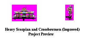 . The Crosbowmen and the Heavy Scorpian from the AoK game. Here are the Previews. I have not started on the Heavy Scorpian but I am quickly compleating the Crosbowmen