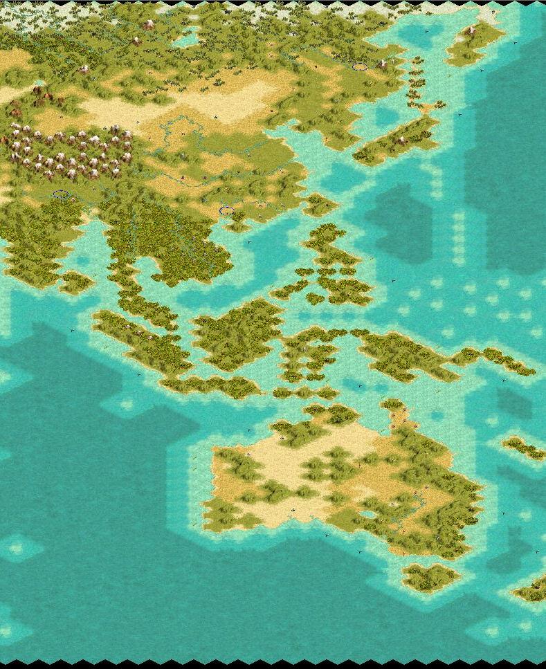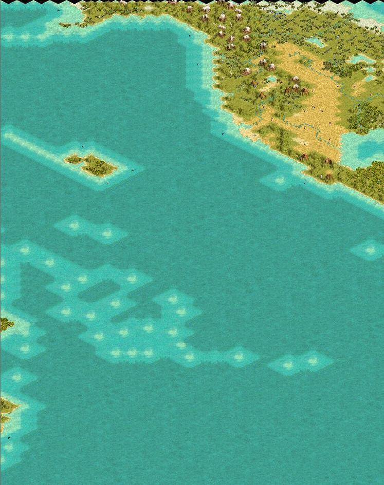 Also I made most small islands costal squares...this allows one to use them for exploration with galleys and caravels but saves one from having 50 disproportionately large islands all over the map (and now you do not have to wait for marines to take all those stupid little things from the ever expanding cpus) so every island which would be just one square was either connected together with other nearby island or eliminated